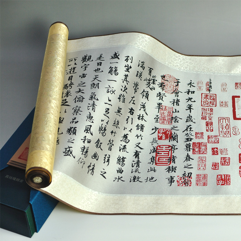 書聖王羲之《蘭亭序》真絲織錦卷軸畫(長款)