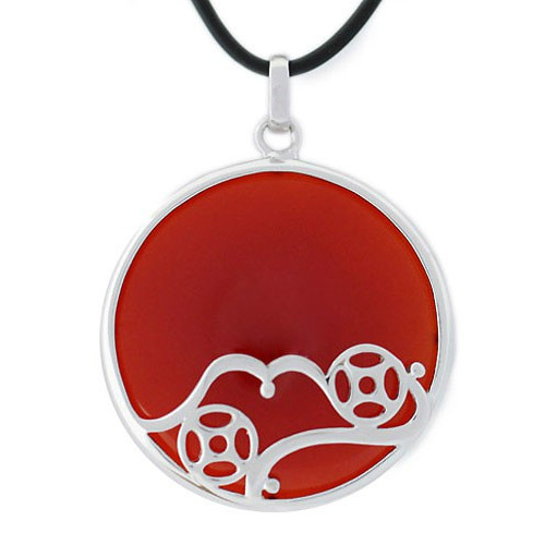 925純銀鍍白金中國紅瑪瑙吊墜-稱心如意